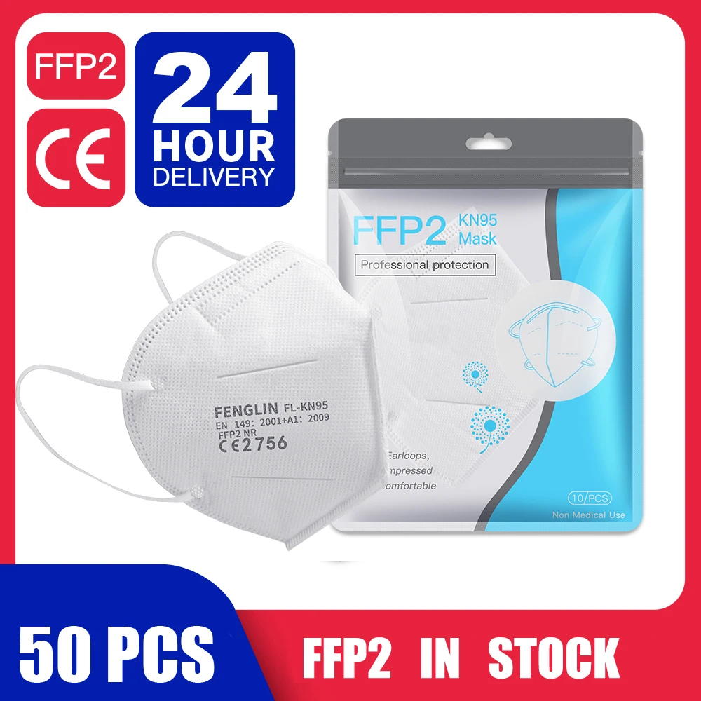 Name: Mascarilla KN95 FFP2 con filtración, máscara facial transpirable, antiniebla, antipolvo, 50 Uds.